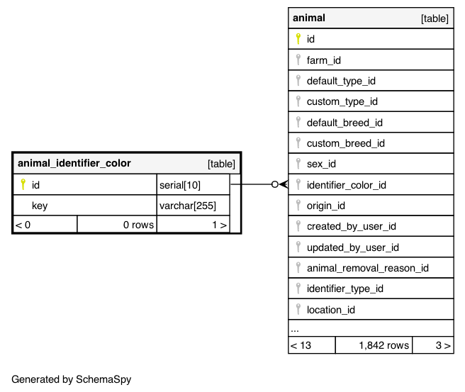 | animal_identifier_color_pkey | Primary key | Asc | id |