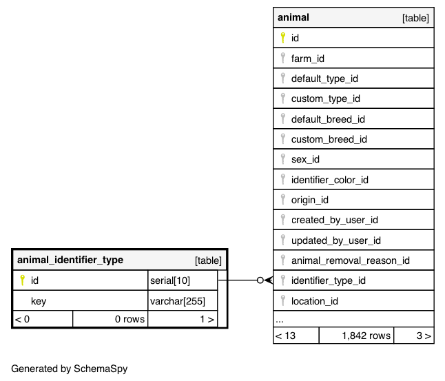 | animal_identifier_type_pkey | Primary key | Asc | id |