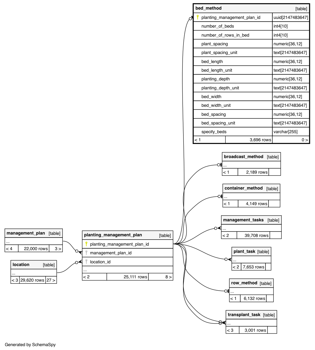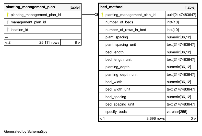 | bed_method_pkey | Primary key | Asc | planting_management_plan_id |
