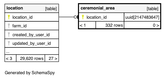 | ceremonial_area_pkey | Primary key | Asc | location_id |
