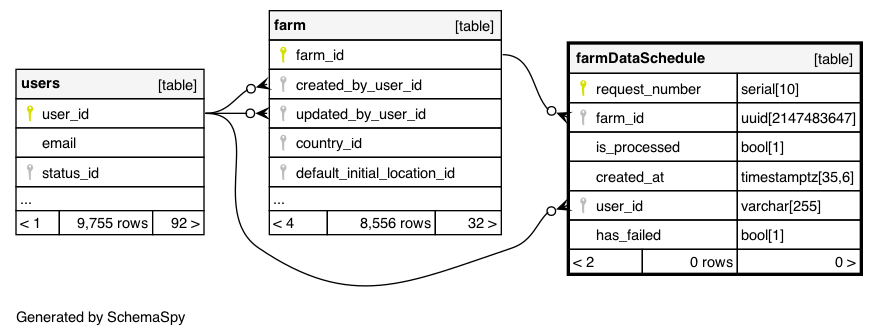 | farmDataSchedule_pkey | Primary key | Asc | request_number |