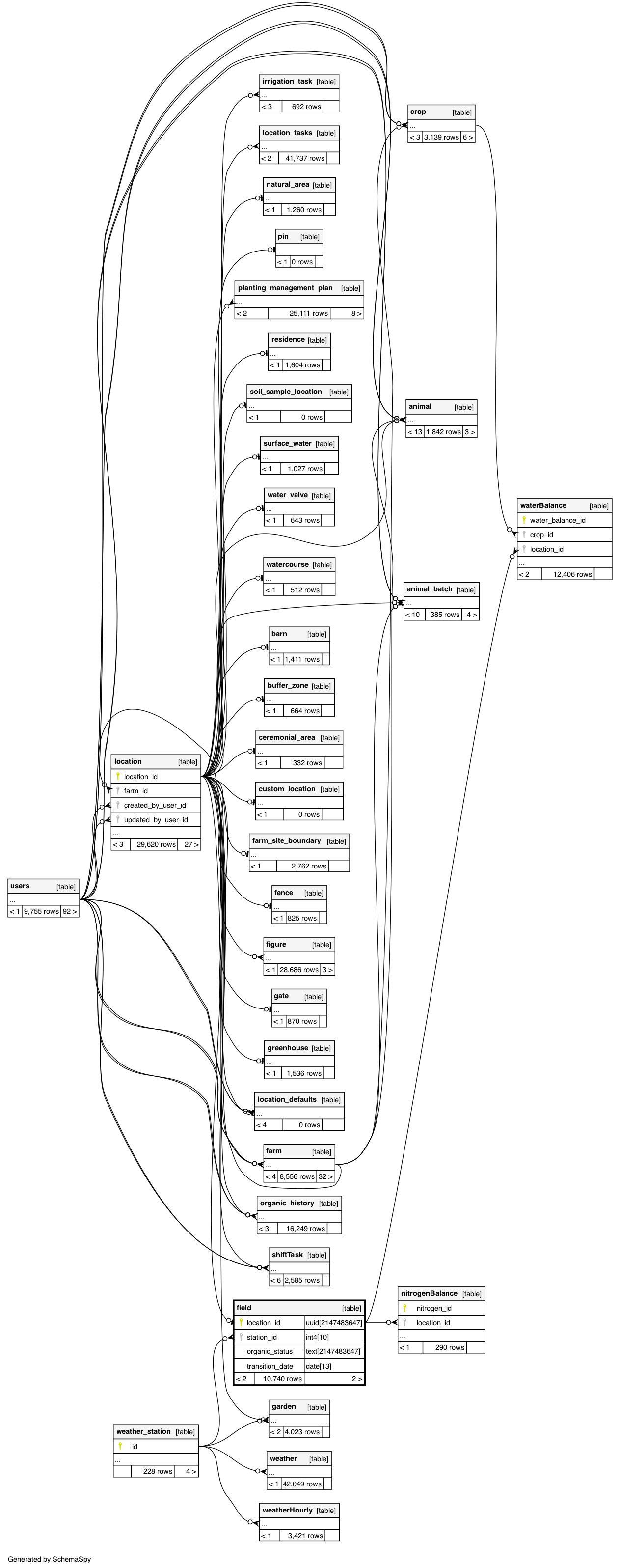 | field_pkey | Primary key | Asc | location_id |