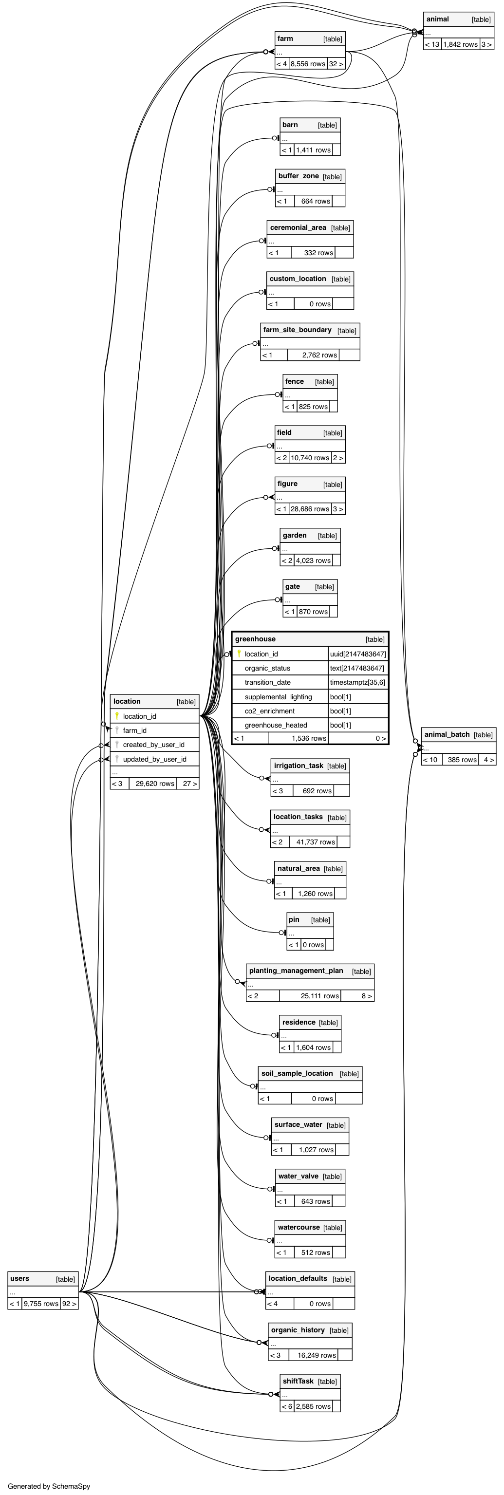 | greenhouse_pkey | Primary key | Asc | location_id |