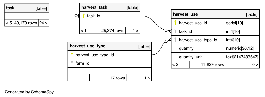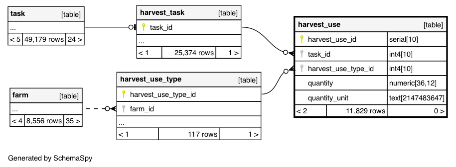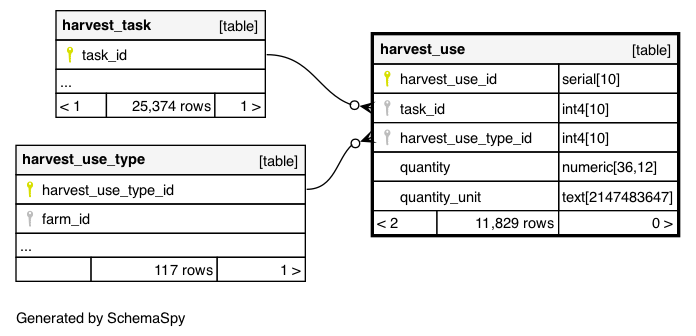 | harvestUse_pkey | Primary key | Asc | harvest_use_id |