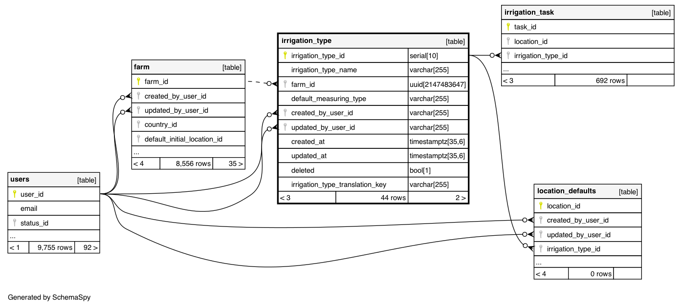 | irrigation_type_pkey | Primary key | Asc | irrigation_type_id |