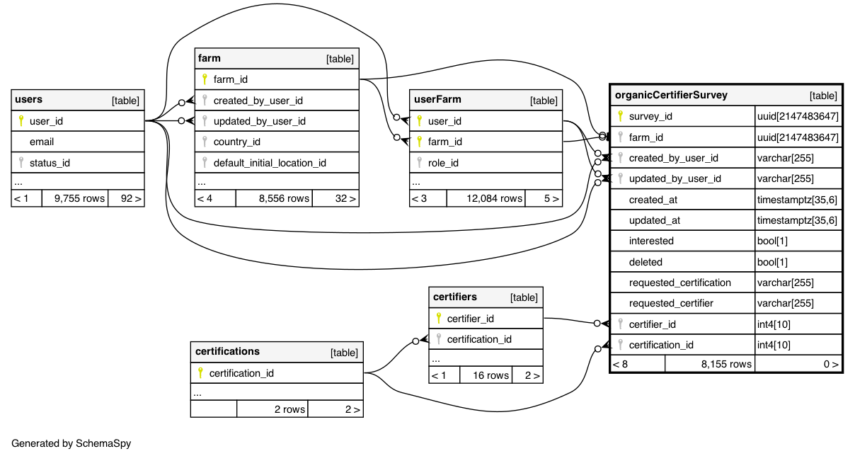 | organicCertifierSurvey_pkey | Primary key | Asc | survey_id |