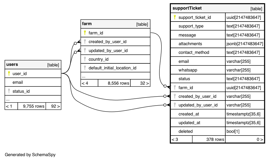 | support_ticket_id | uuid | 2147483647 | uuid_generate_v4() |