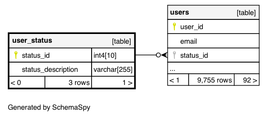 | user_status_pkey | Primary key | Asc | status_id |