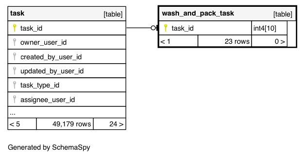 | wash_and_pack_task_pkey | Primary key | Asc | task_id |